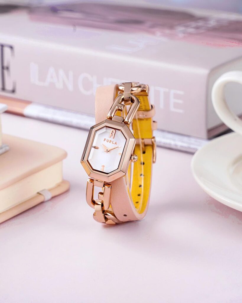 Đồng Hồ Furla Chính Hãng Nữ WW00044005L3 Octagonal 21mm Rose Gold Leather Women Watch