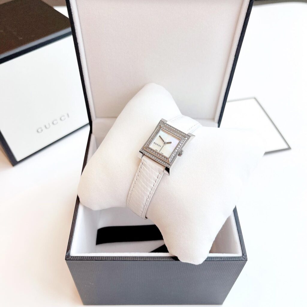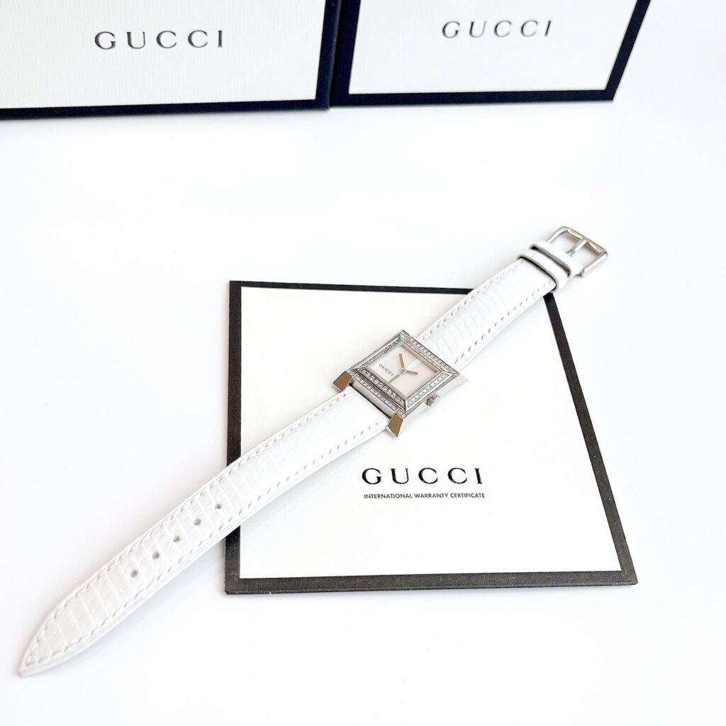 Đồng Hồ Gucci Chính Hãng Nữ Guccio Silver Dial White Leather Ladies Watch