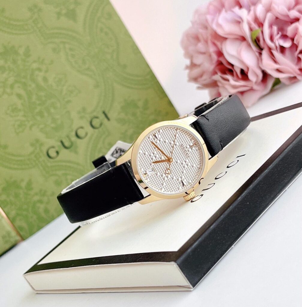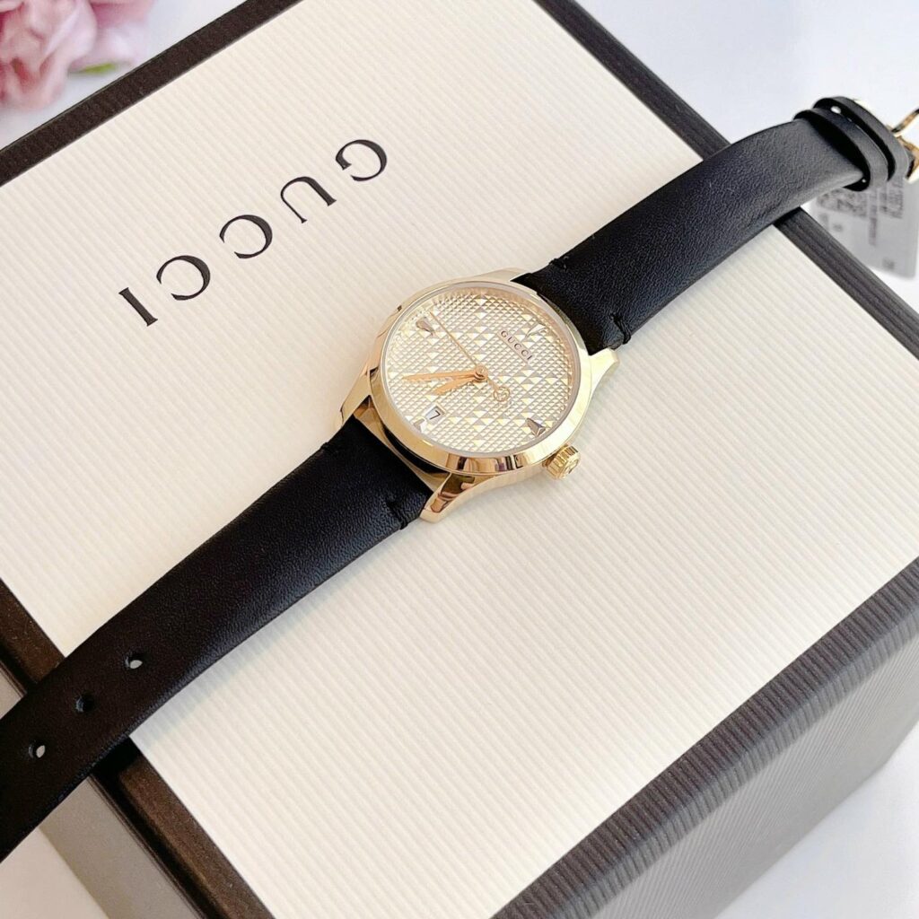 Đồng Hồ Gucci Chính Hãng Nữ YA126571 G-Timeless Black Leather Women Watch