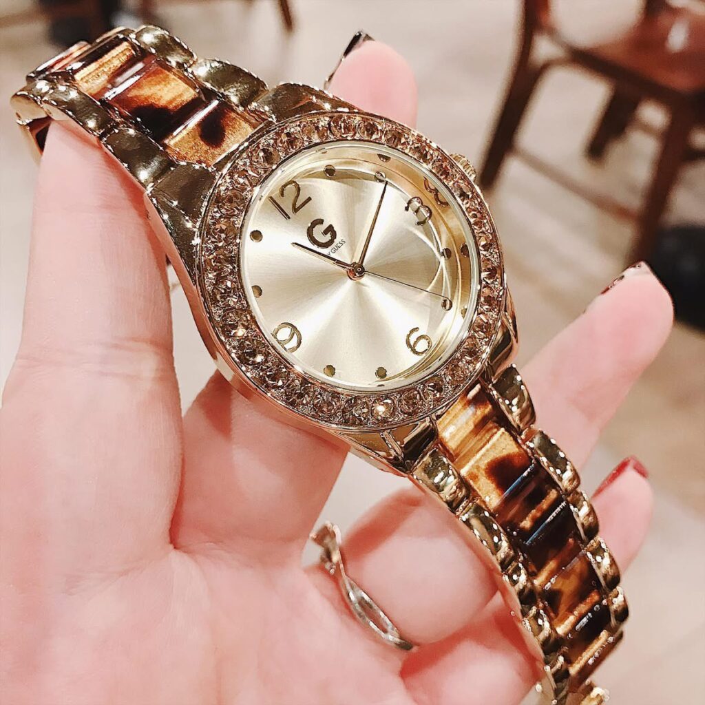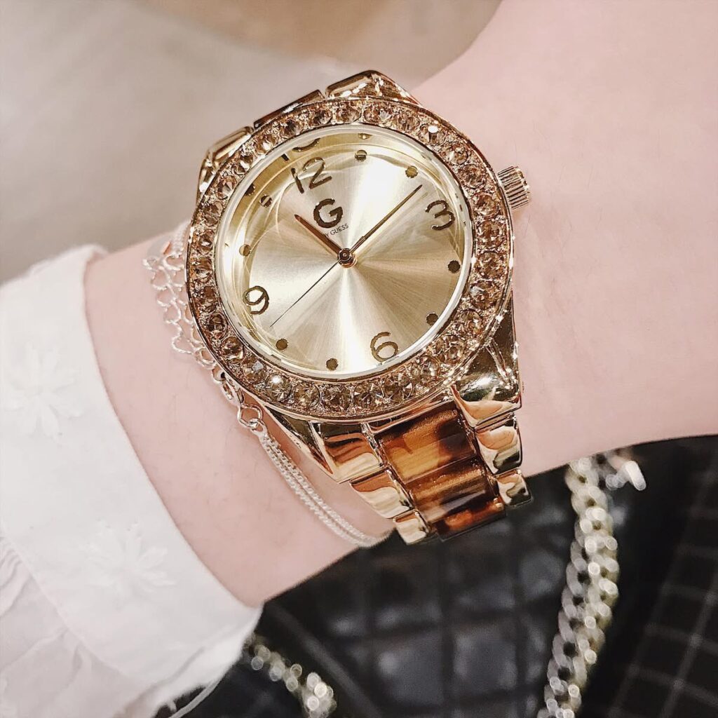 Đồng Hồ Guess Chính Hãng Nữ G89110L1 Women’s Analog timepiece features a gold-tone case Watch