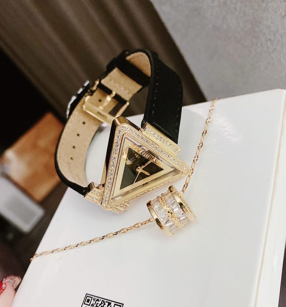 Đồng Hồ Guess. Chính Hãng Nữ GW0504L5 Gold Tone Case Black Leather Ladies Watch