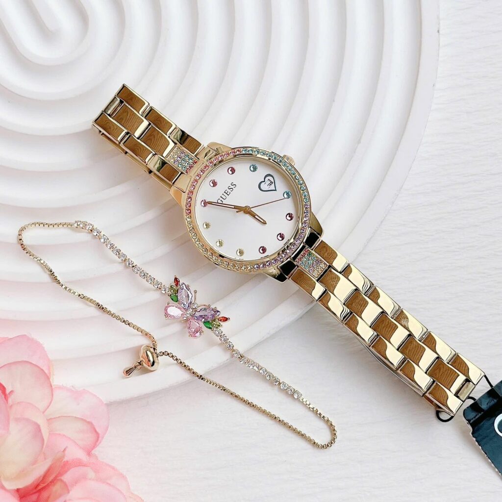 Đồng Hồ Guess Chính Hãng Nữ GW0657L2 Three Of Hearts Gold Tone Ladies Watch