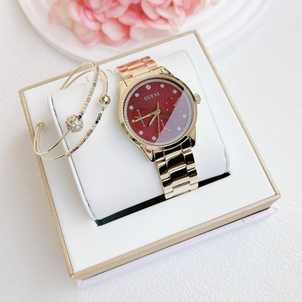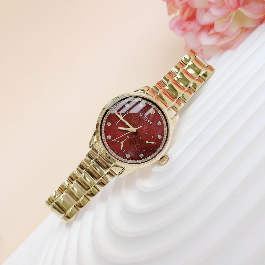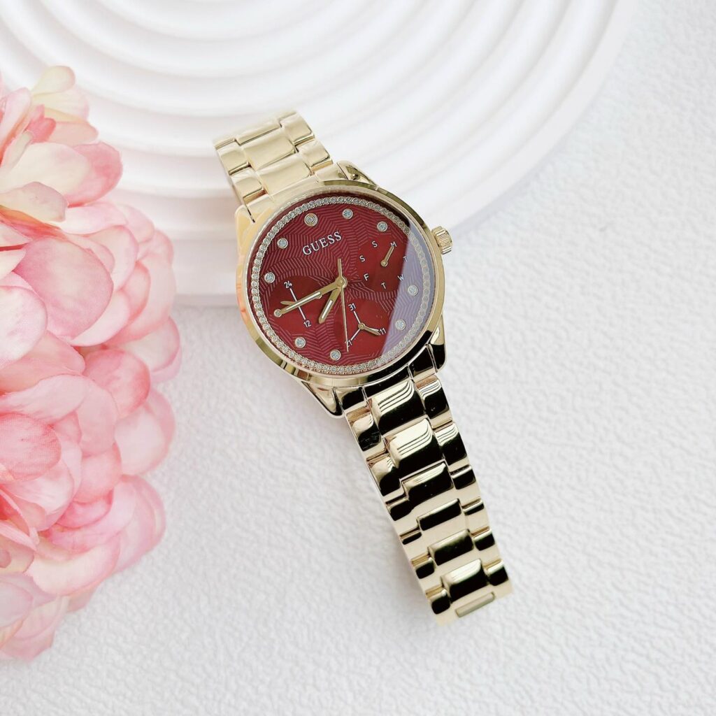 Đồng Hồ Guess Chính Hãng Nữ GW0659L5 Gold Tone Bracelet Red Dial Gold Tone Case