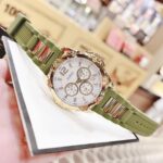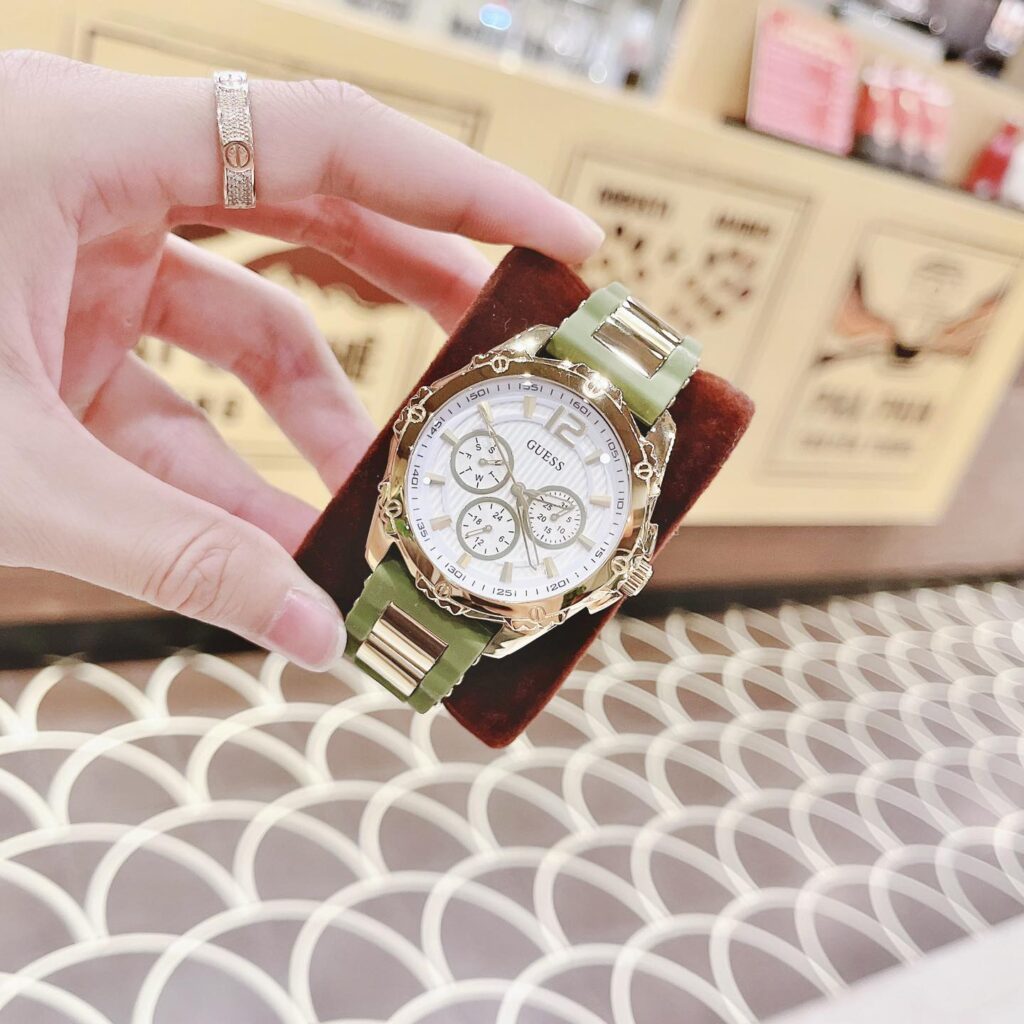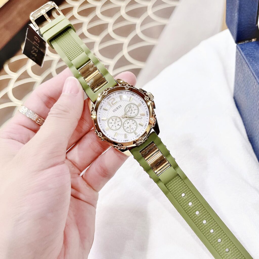 Đồng Hồ Guess Chính Hãng Nữ W0325L5 Golden Dial Analog Quartz Green Band Multifunction Ladies Watch