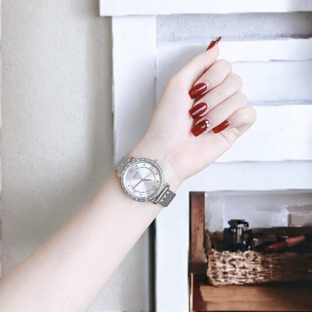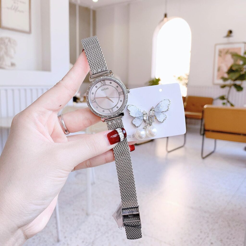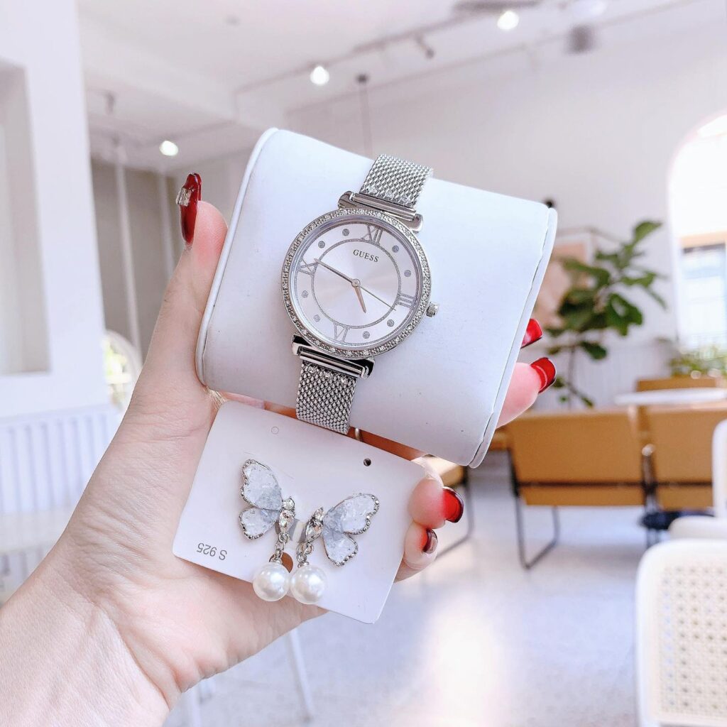 Đồng Hồ Guess Nữ Chính Hãng W1289L1 Jewel Quartz Crystal Silver Dial Ladies Watch