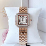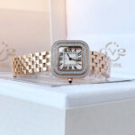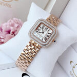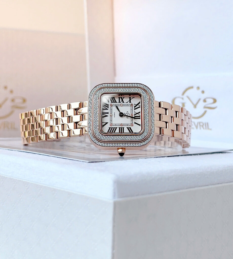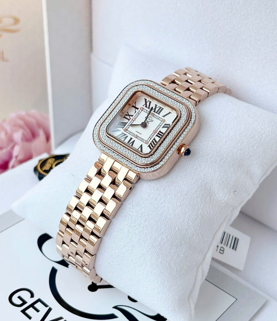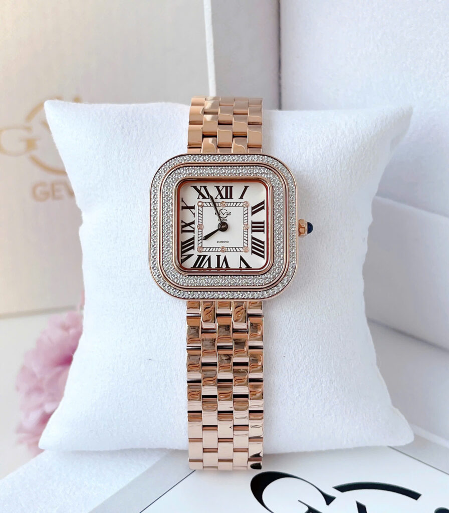 GV2 Bellagio 12131B – Siêu phẩm 2024 dành riêng cho phái đẹp yêu thích sự sang trọng và cá tính Mẫu đồng hồ GV2 Bellagio 12131B phiên bản mới nhất 2024 đã có mặt tại Việt Nam, sẵn sàng “đốn tim” các chị em bằng thiết kế cực kỳ nổi bật và đẳng cấp. GV2 là thương hiệu nằm trong Top 50 hãng đồng hồ đắt đỏ nhất thế giới, nổi tiếng với những mẫu đồng hồ thời trang cao cấp mang đậm chất châu Âu. Chiếc Bellagio 12131B gây ấn tượng với dây và vỏ bằng thép không gỉ mạ màu rose gold, kết hợp 2 viền khảm đinh giả KC sáng lấp lánh, tạo hiệu ứng bắt sáng cực tốt, đầy thu hút. Thiết kế mặt vuông kích thước 30mm, tương đương khoảng 32–33mm mặt tròn, phù hợp với cổ tay nữ vừa và nhỏ, vừa nổi bật lại vừa tinh tế. Trên mặt số còn được đính 8 viên kim cương tự nhiên, kết hợp cùng kính Sapphire chống xước, mang lại cảm giác sang trọng tuyệt đối. Đồng hồ sử dụng máy pin Ronda 762 (Thụy Sĩ) nổi tiếng về độ bền và chính xác. Khả năng chống nước 5ATM giúp nàng thoải mái sử dụng trong sinh hoạt thường ngày. GV2 Bellagio 12131B không chỉ là một chiếc đồng hồ mà còn là tuyên ngôn về phong cách – hiện đại, thời thượng và vô cùng quý phái. Sản phẩm hàng chính hãng, đã có sẵn số lượng giới hạn – nàng đừng bỏ lỡ!