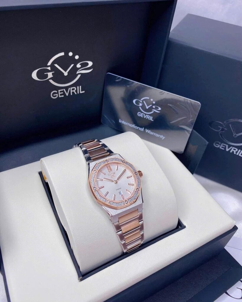 Đồng Hồ GV2 by Gevril Chính Hãng Nữ 12701 Palmanova Diamond Steel Date Ladies Watch