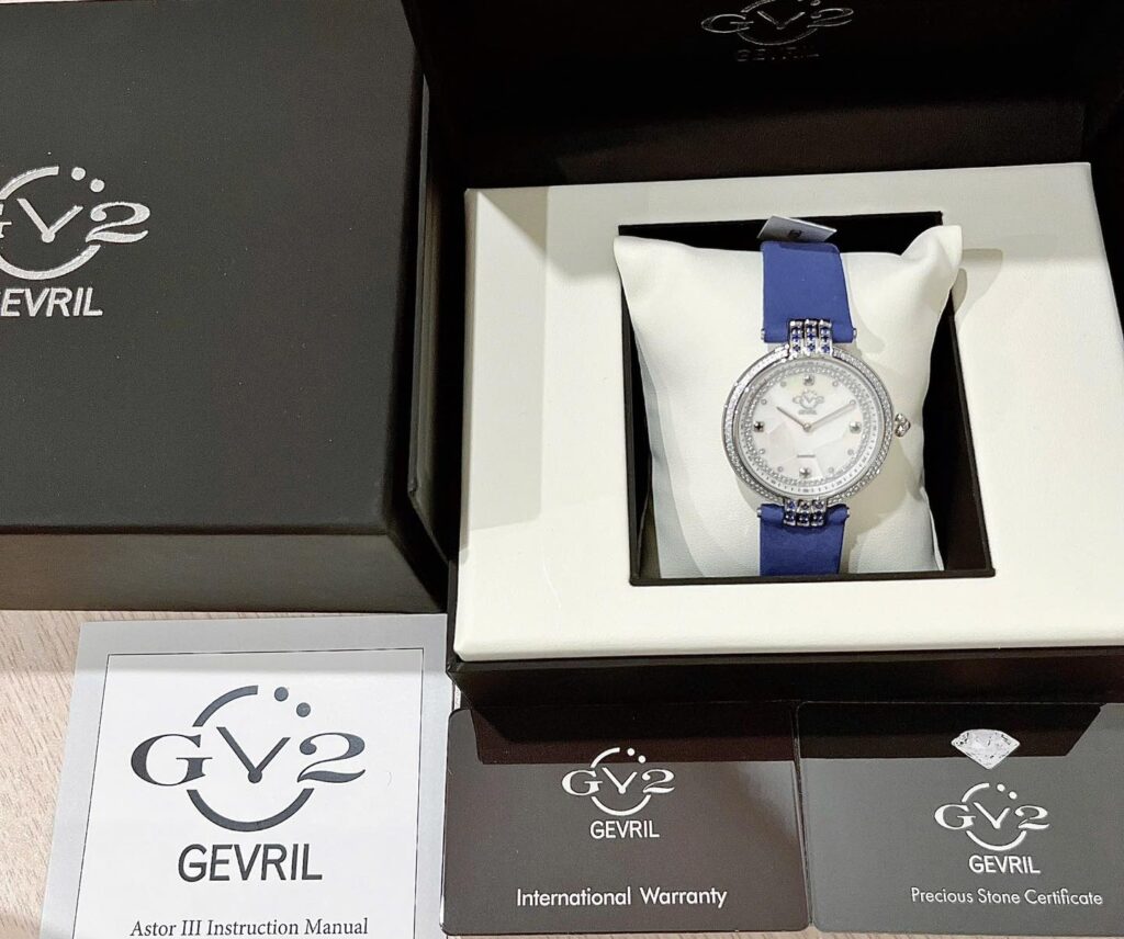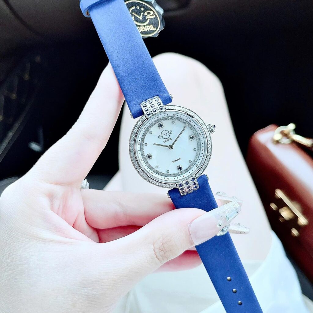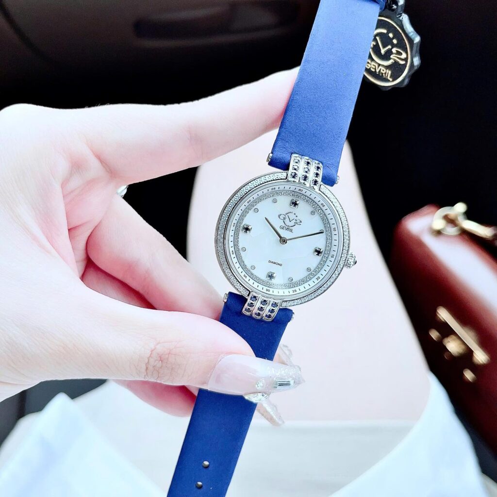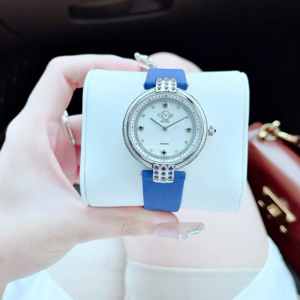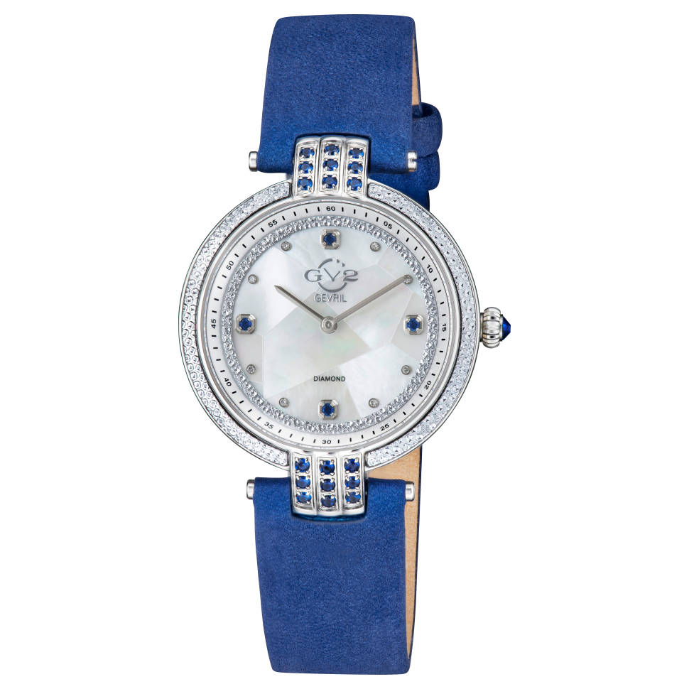 Đồng Hồ GV2 by Gevril Chính Hãng Nữ 12801 Matera Diamond Mother of Pearl Blue Leather Dial Ladies Watch