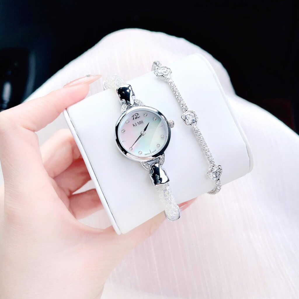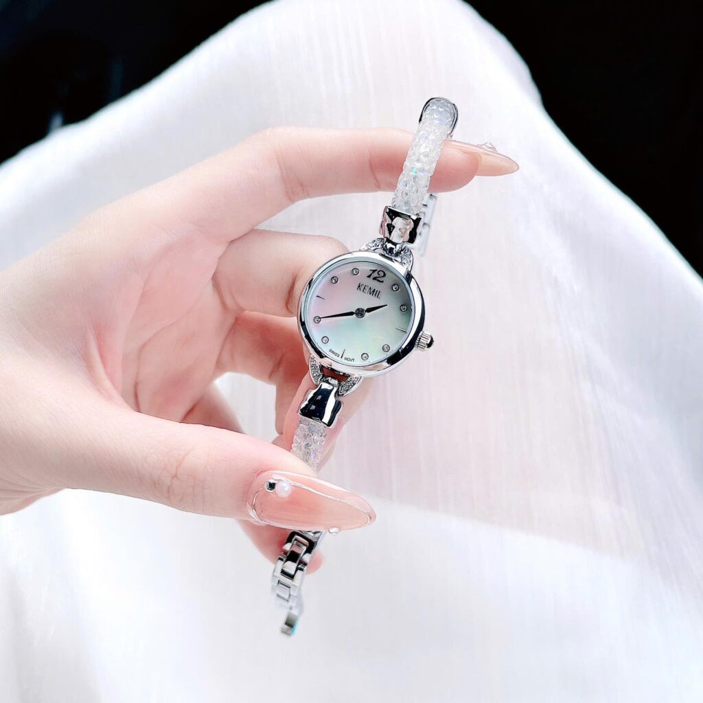 Đồng Hồ Kemil by K&M Nữ Chính Hãng Silver Diamond Stainless Steel Bracelet Ladies Watch