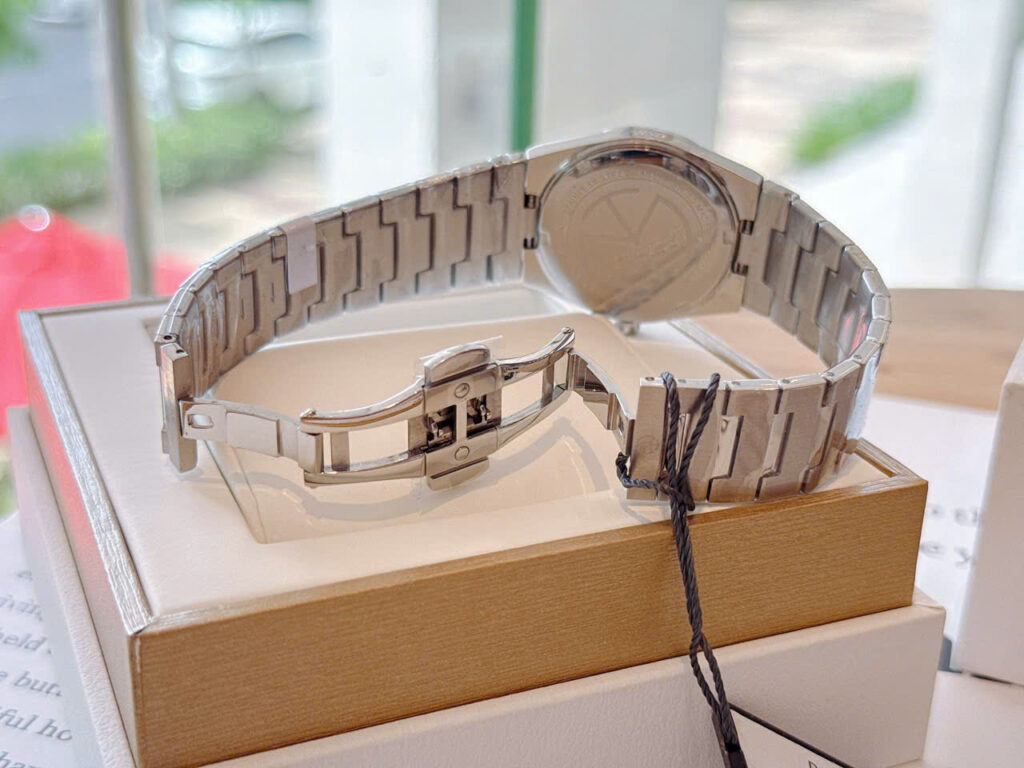 - Chỉ bảo hành thay thế mới cho những linh kiện, phụ tùng bị hỏng do lỗi của nhà sản xuất – không thay thế bằng một chiếc đồng hồ khác.Những đồng hồ có biểu hiện chạy sai giờ (nhanh hoặc chậm hơn), đứng máy và các lỗi khác thuộc về chức năng của bộ máy đồng hồ sẽ được áp dụng chế độ bảo hành của chúng tôi. Chế độ bảo hành của chúng tôi KHÔNG BAO GỒM các hư hại bên ngoài của đồng hồ.