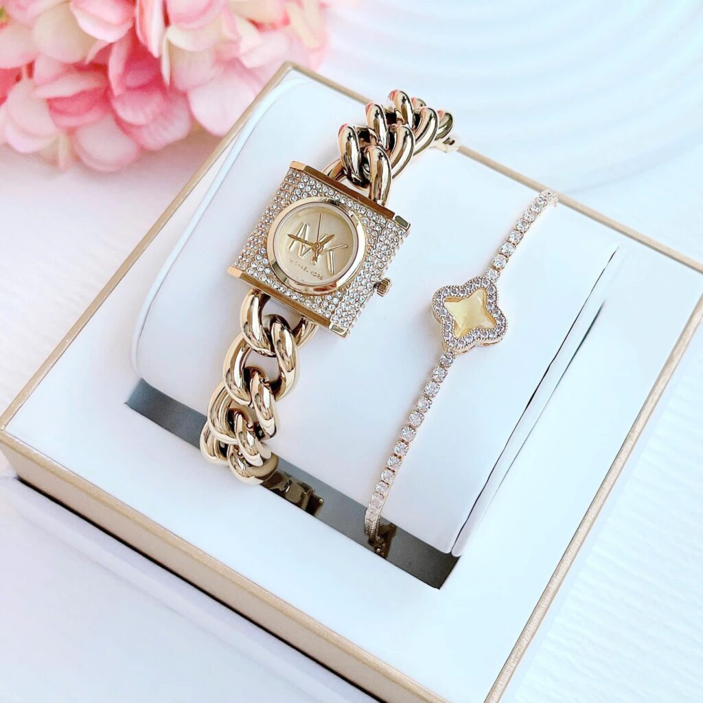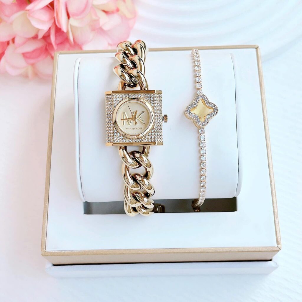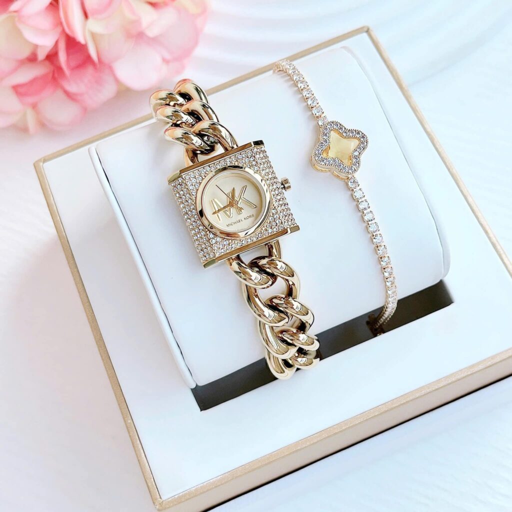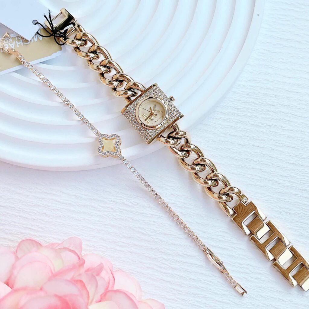 Đồng Hồ Michael Kors Nữ Chính Hãng MK4711 Chain Lock Three-Hand Gold-Tone Stainless Steel Watch