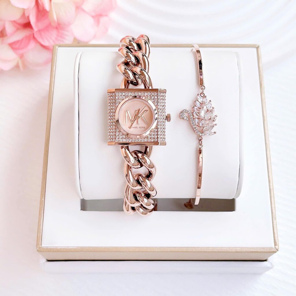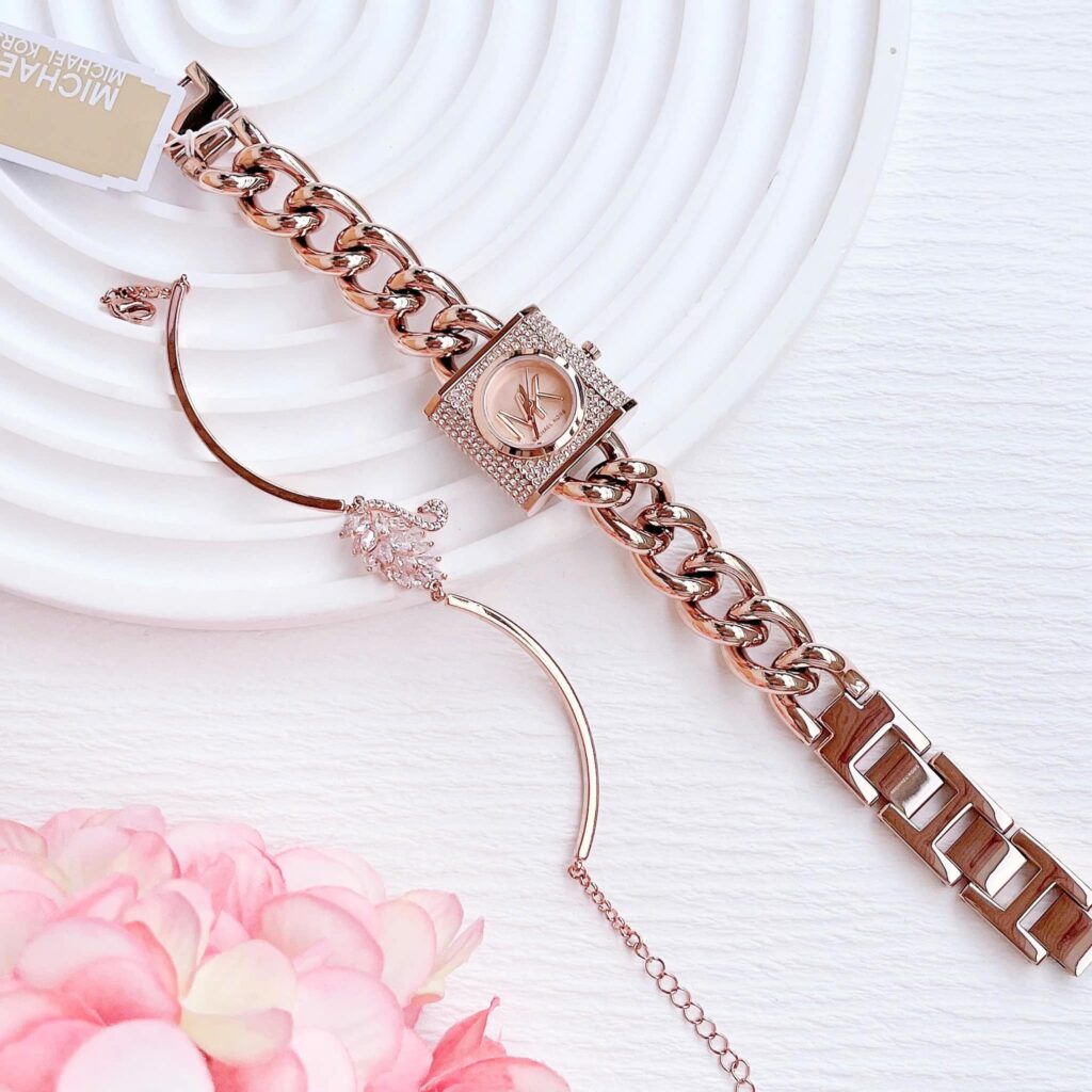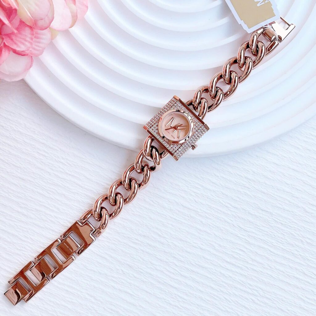 Đồng Hồ Michael Kors Nữ Chính Hãng MK4827 Chain Lock Three-Hand Rose Gold-Tone Stainless Steel Watch