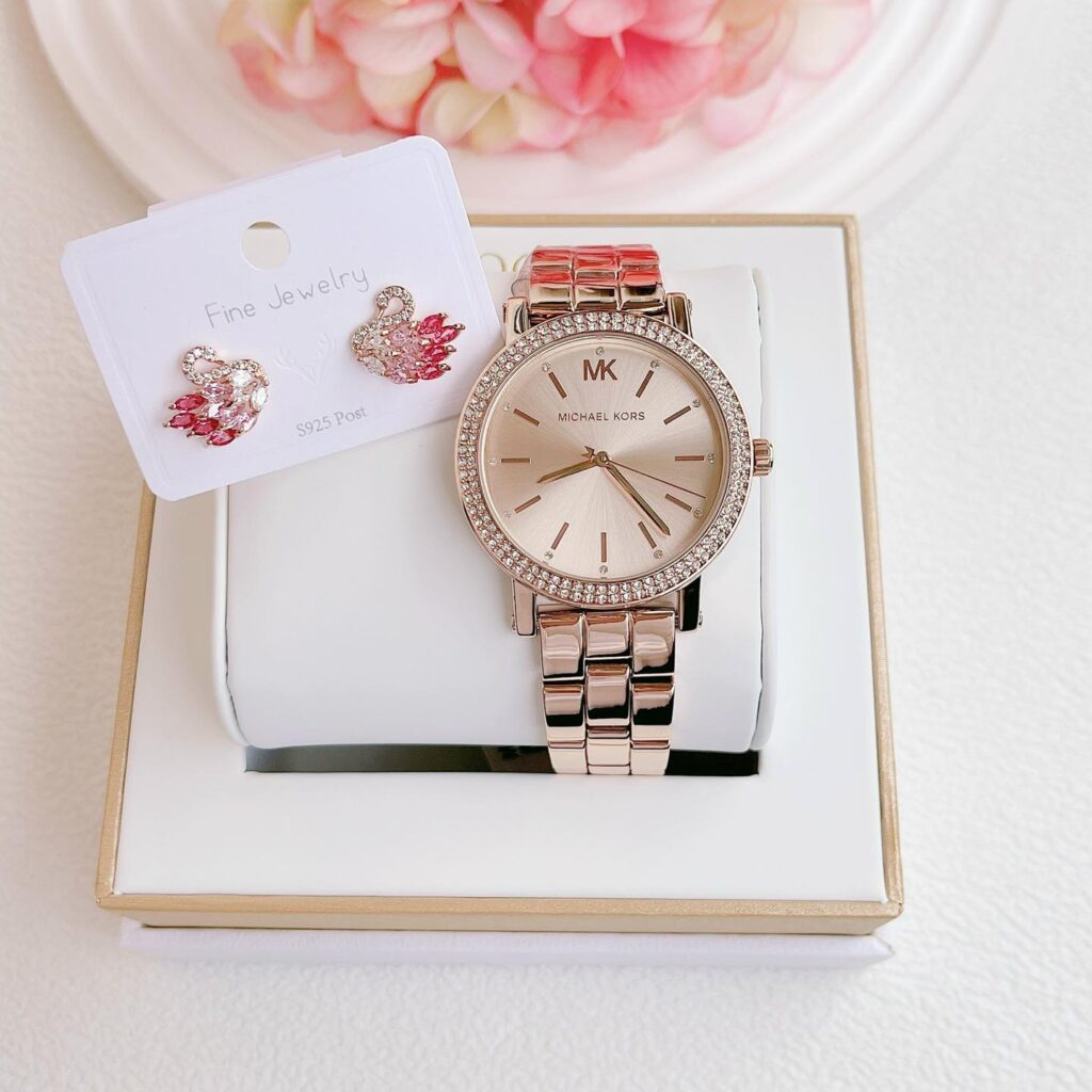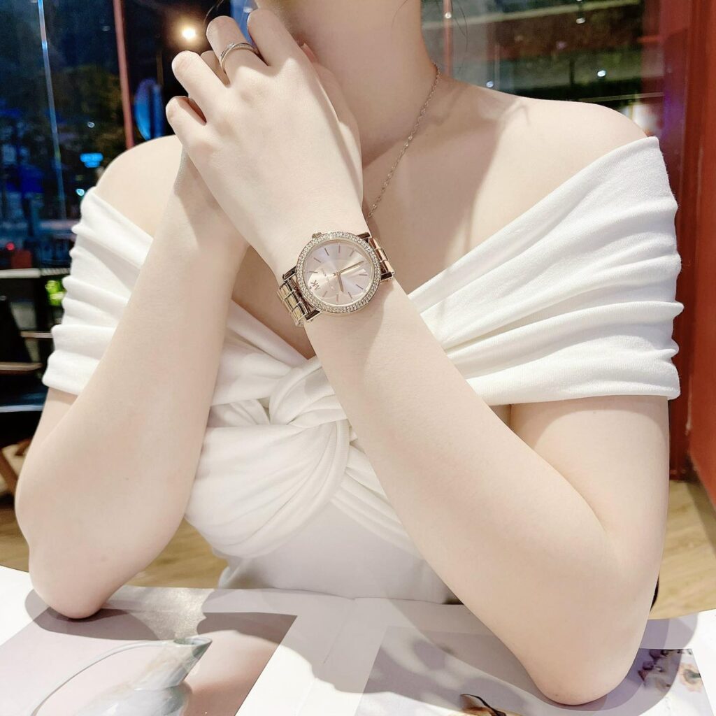 Michael Kors MK7346 Corey – Tone Rose Gold Sang Xịn, Viền Pha Lê Cực Đẹp, Sẵn SG Thiết kế tone thép rose gold sáng bóng, nổi bật với 2 viền đính pha lê quanh mặt đồng hồ, lên tay vừa...