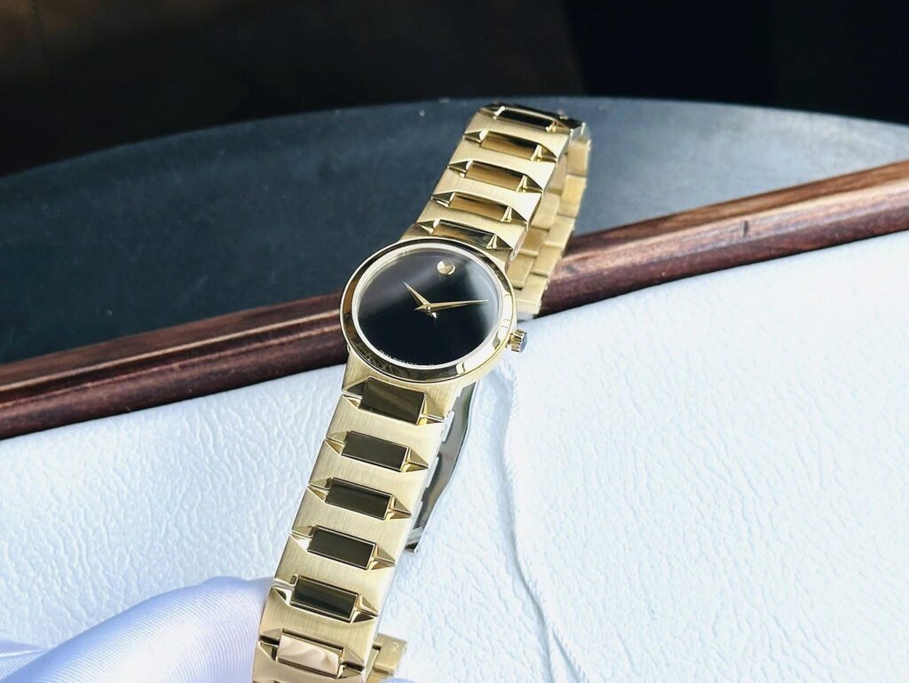 Đồng Hồ Movado Nữ Chính Hãng 0607297 Temo Quartz Black Dial Ladie Watch