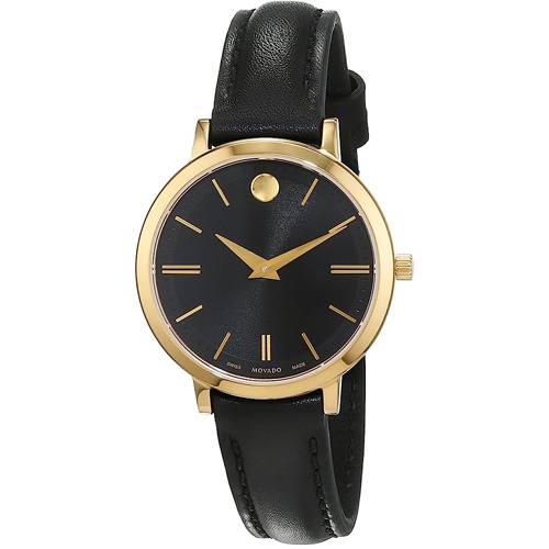 Đồng Hồ Movado Nữ Chính Hãng 607095 Ultra Slim Black Dial Leather Ladies Watch