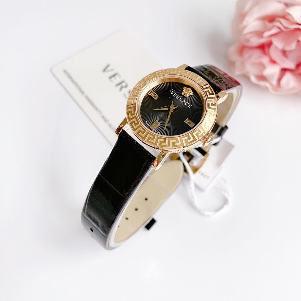 Đồng Hồ Nữ Versace Chính Hãng VE6M00222 Petit Black Leather Ladies Watch