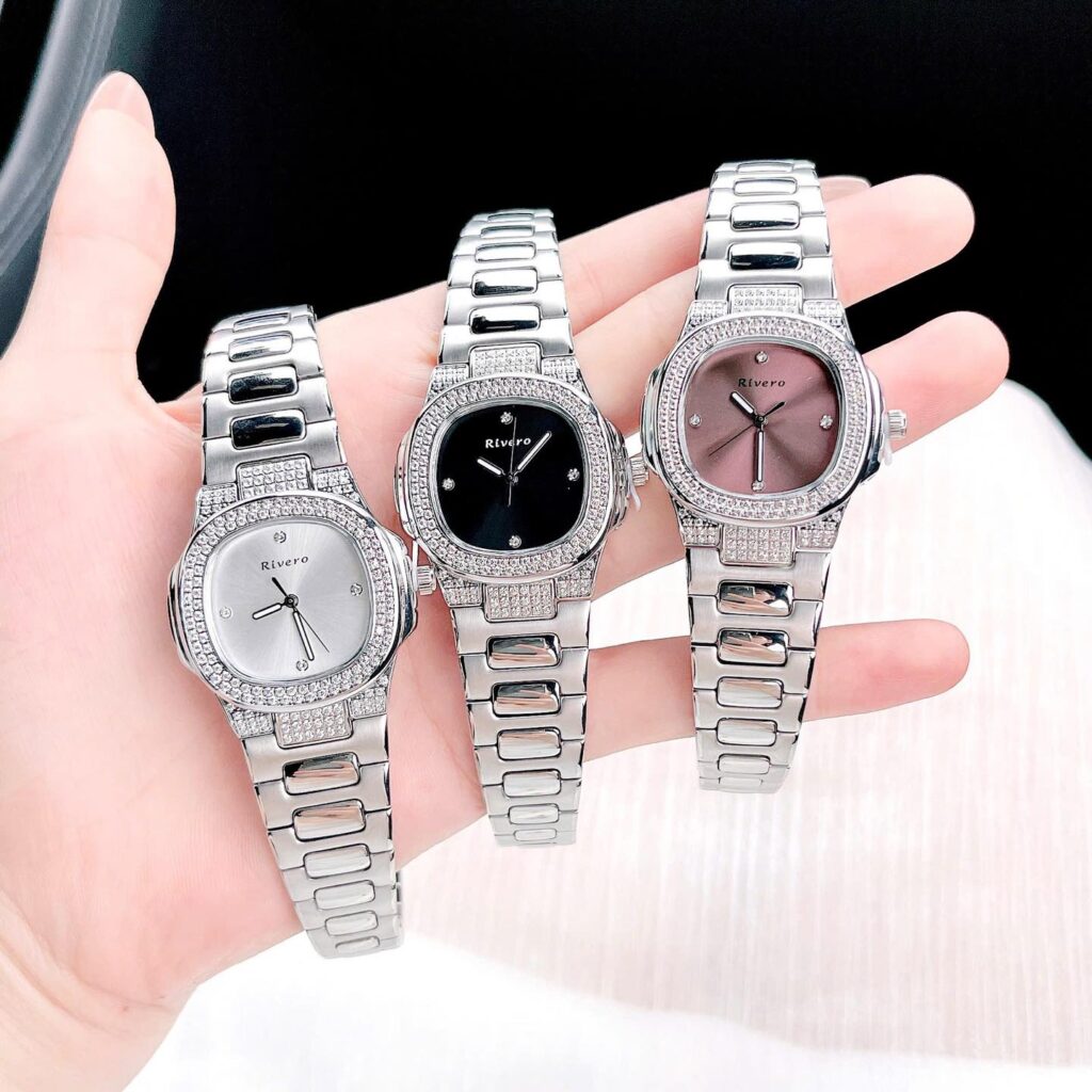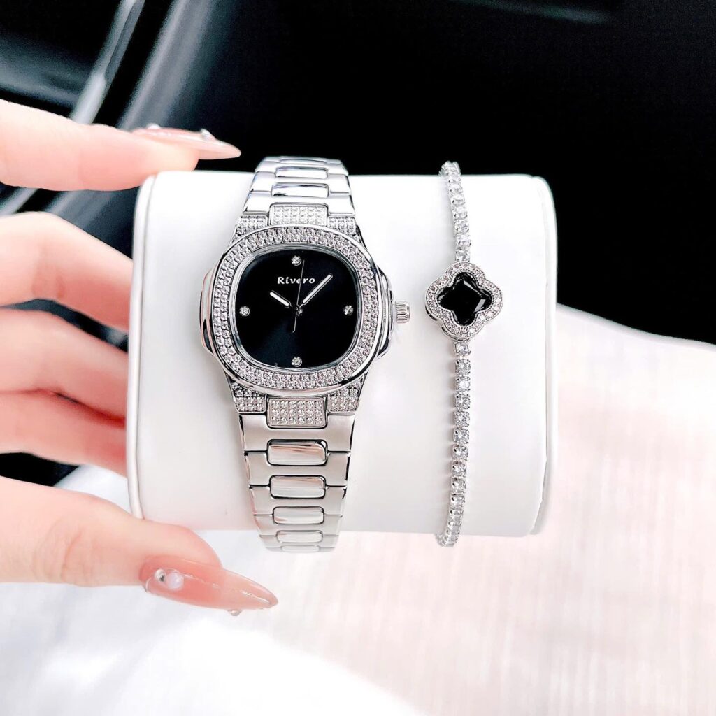 Đồng Hồ Rivero Nữ Chính Hãng New Collection Silver Steel Black Dial Square Watch