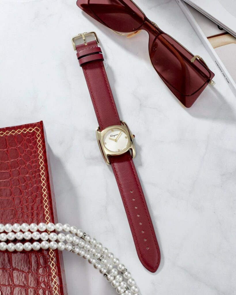 Đồng Hồ Salvatore Ferragamo Chính Hãng Nữ SFEL00419 Vara Red Leather Swiss Quartz Watch Ladies Watch