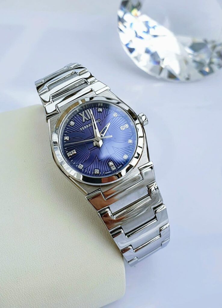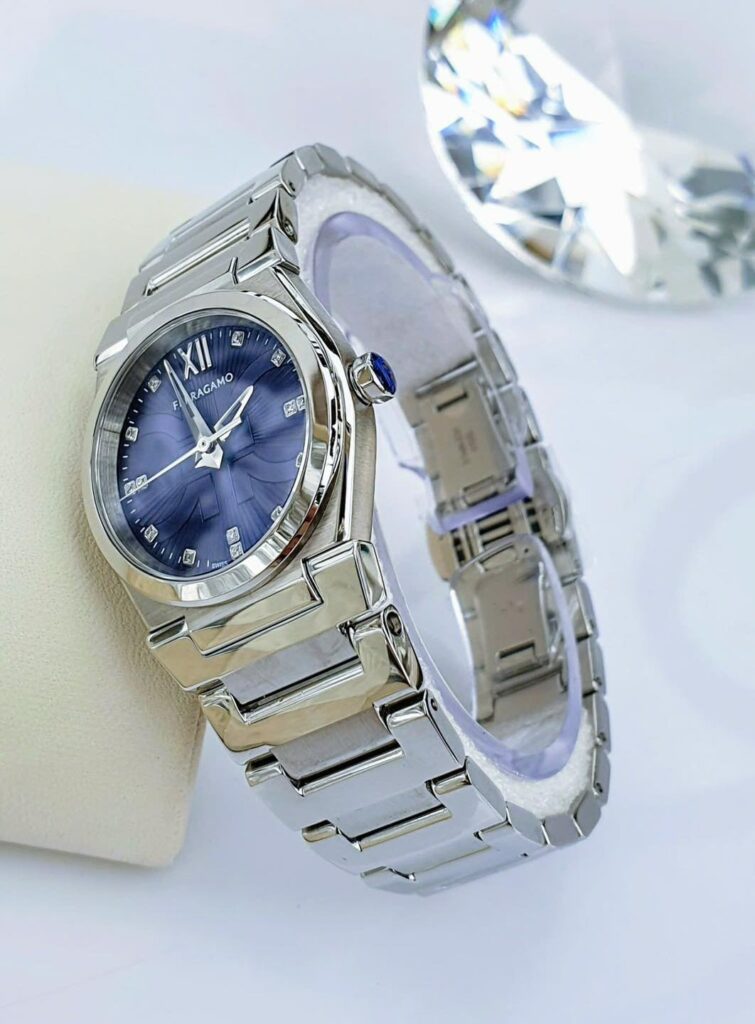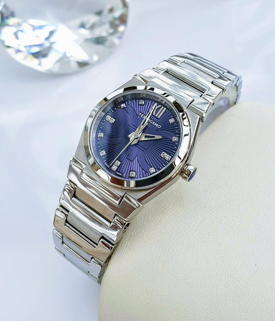 Đồng Hồ Salvatore Ferragamo Chính Hãng Nữ SFYG00823 Vega Ladies Blue-Tone Diamond Watch 28mm