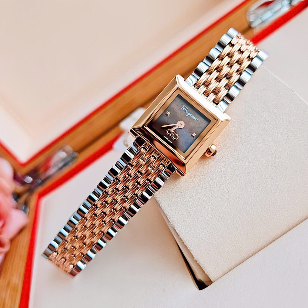 Đồng Hồ Salvatore Ferragamo Chính Hãng Nữ SFYC01322 Square Quartz Black Dial Ladies Watch