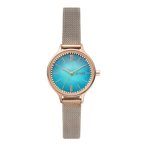 Đồng Hồ Skagen Chính Hãng Nữ SKW2977 Anita Lille Three-Hand Rose-Tone Steel Mesh Watch