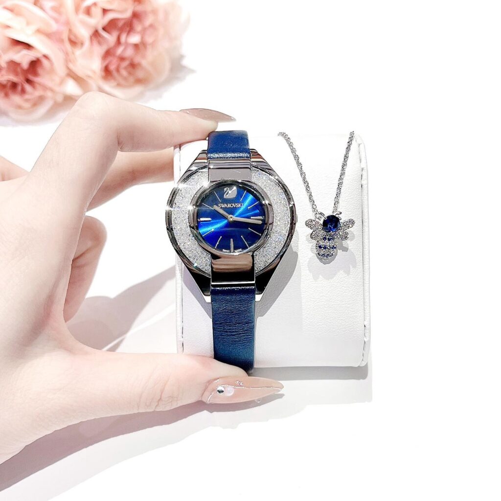 Đồng Hồ Swarovski Chính Hãng Nữ 5547629 Crystalline Blue Leather Ladies Watch