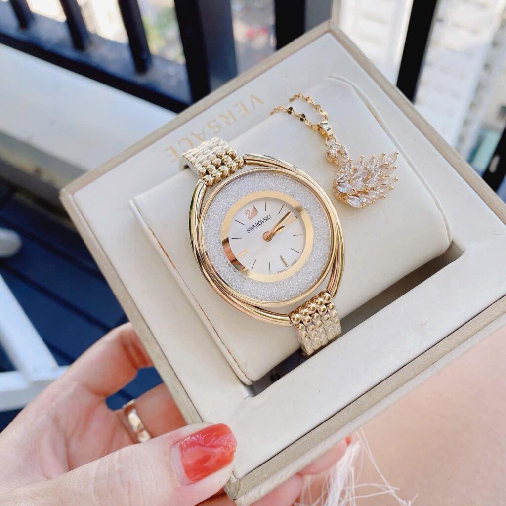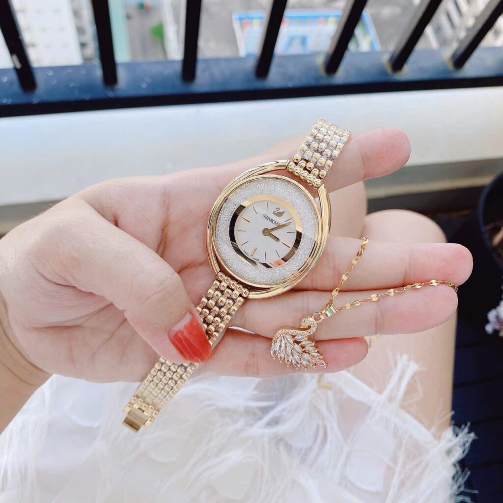 Đồng Hồ Swarovski Nữ Chính Hãng 5200339 Crystalline Oval Gold Tone Bracelet Watch
