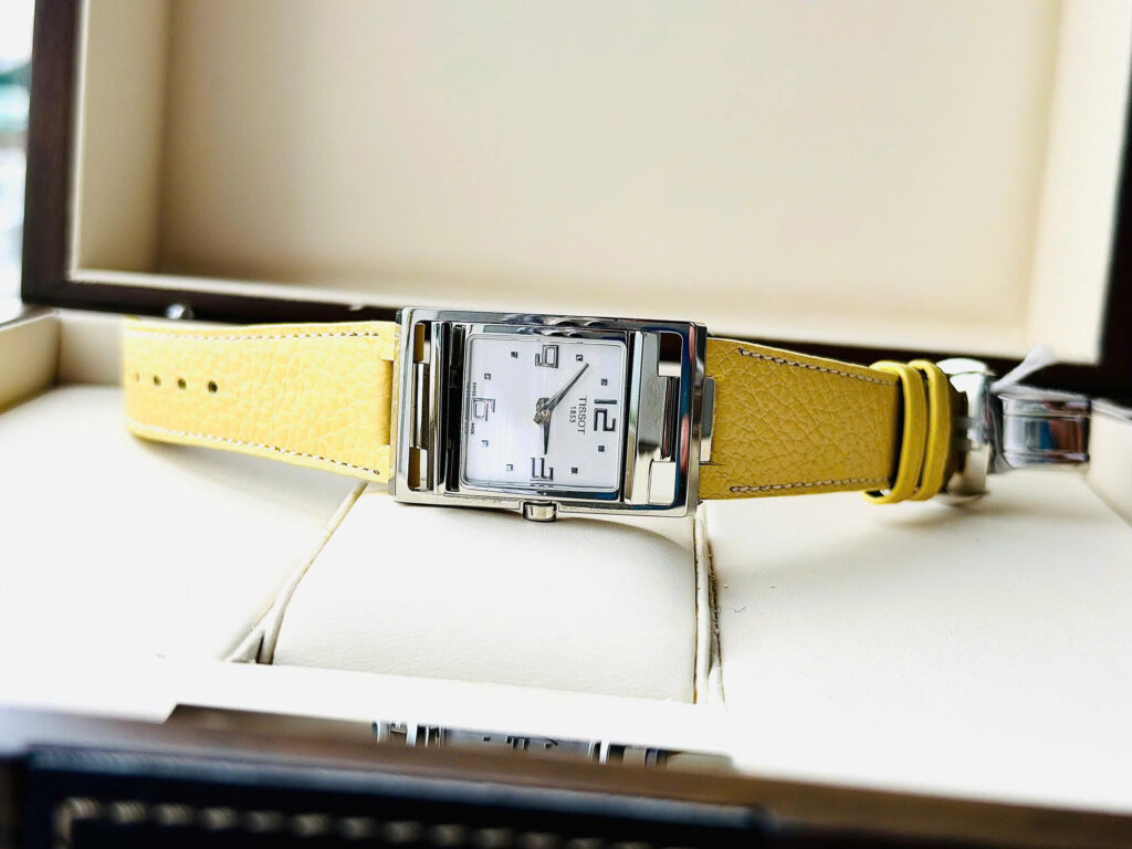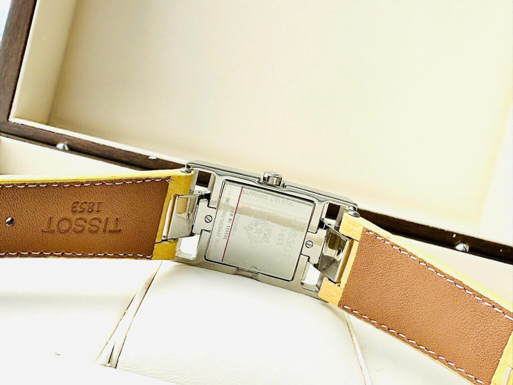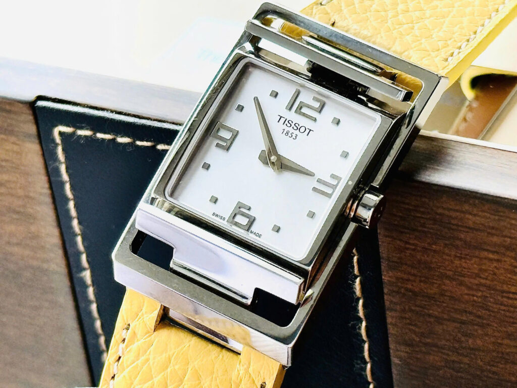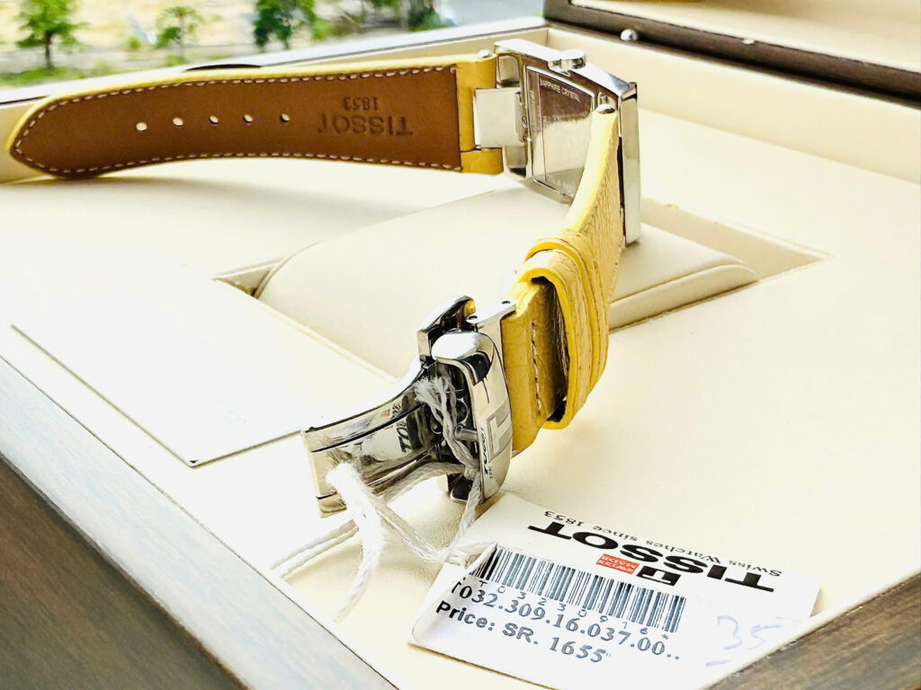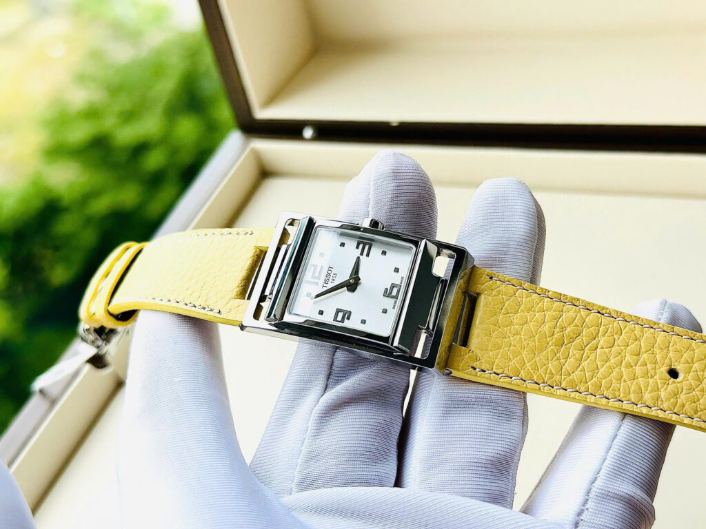 Đồng Hồ Nữ Tissot – Thiết Kế Vuông Cá Tính, Dây Vàng Nâu Thanh Lịch Mẫu đồng hồ nữ Tissot mang phong cách châu Âu hiện đại, kết hợp giữa thiết kế mặt vuông cá tính và tông dây vàng...