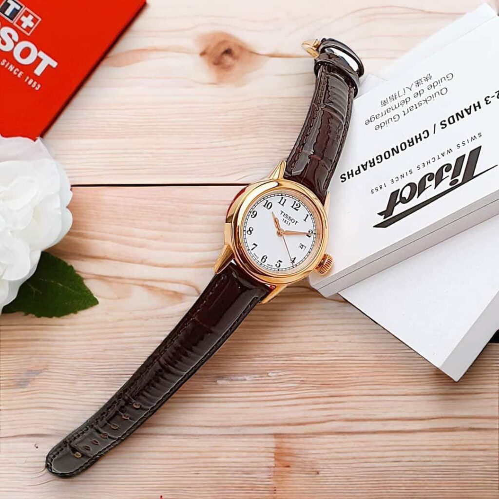 Đồng Hồ Tissot Nữ Chính Hãng T085.210.36.012.00 T0852103601200 Carson White Dial Brown Leather Ladies Watch