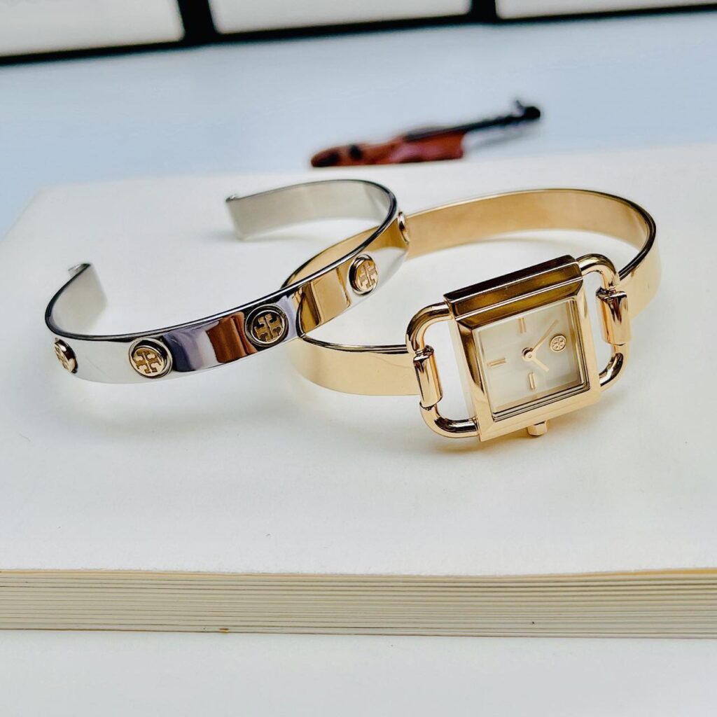Đồng Hồ Tory Burch Nữ Chính Hãng TBW7257 Cream Dial Gold Tone Stainless Steel Bracelet Ladies Watch