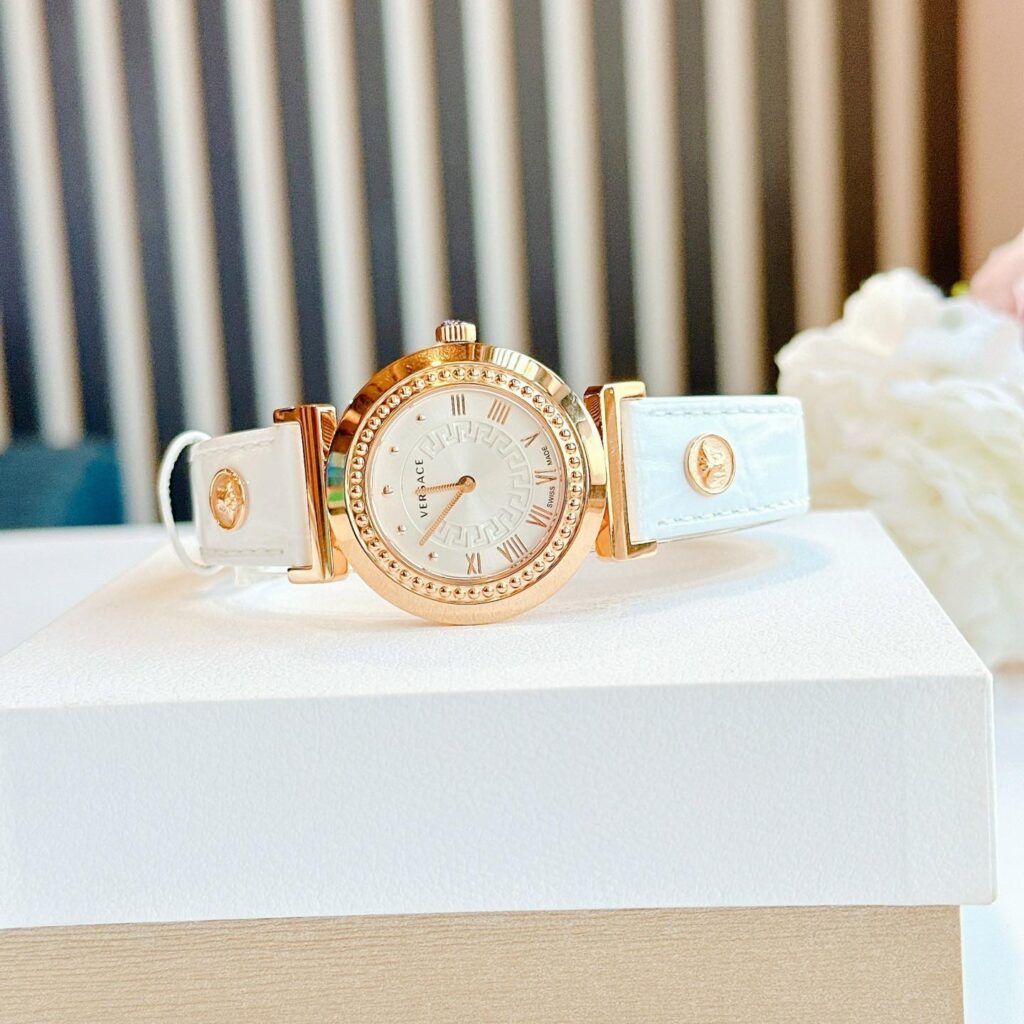 Đồng Hồ Versace Chính Hãng Nữ P5Q80D001S001 Vanity White Leather Ladies Watch