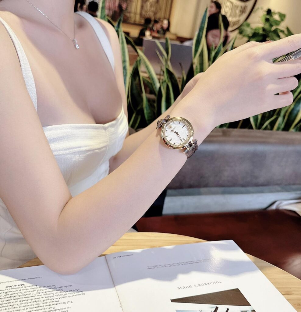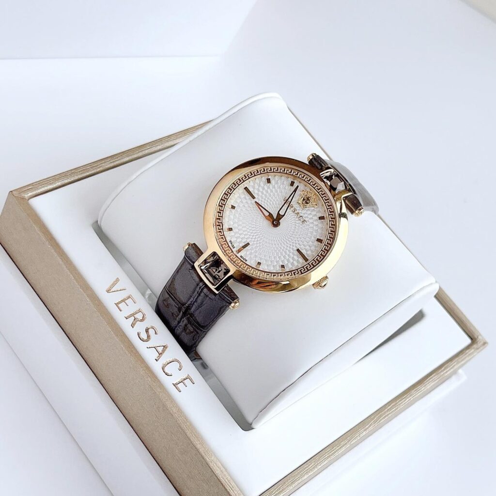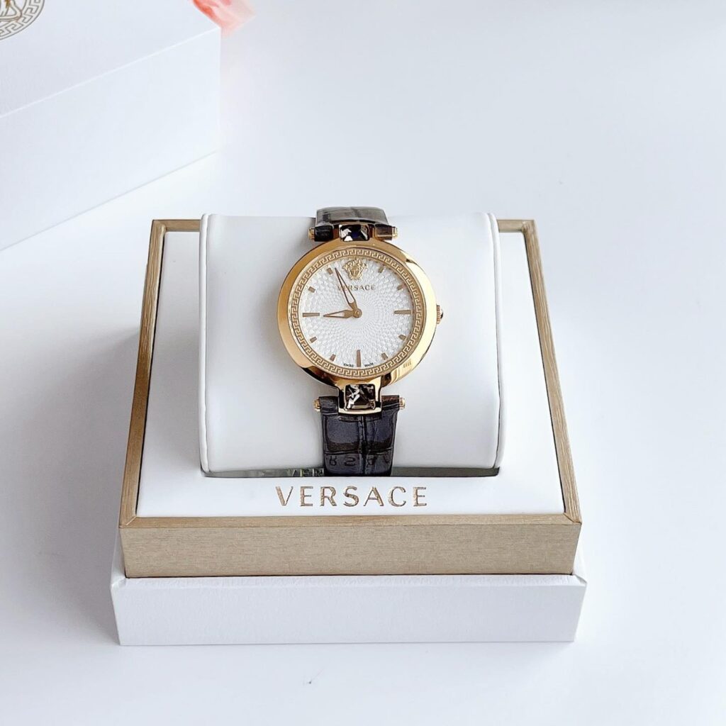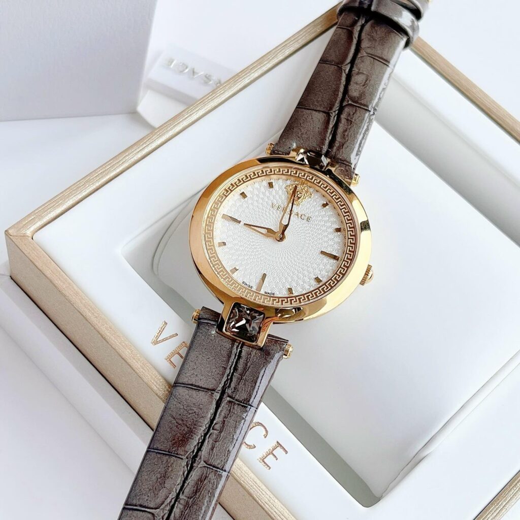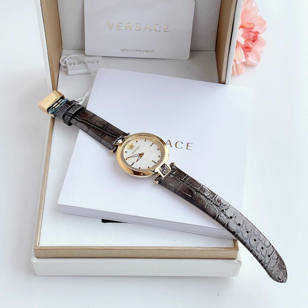 Đồng Hồ Versace Chính Hãng Nữ VAN060016 Olympo Crystal Gold IP White Dial Grey Leather Ladies Watch
