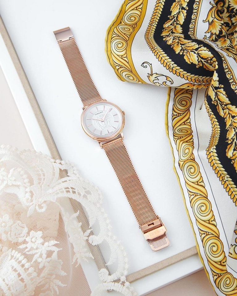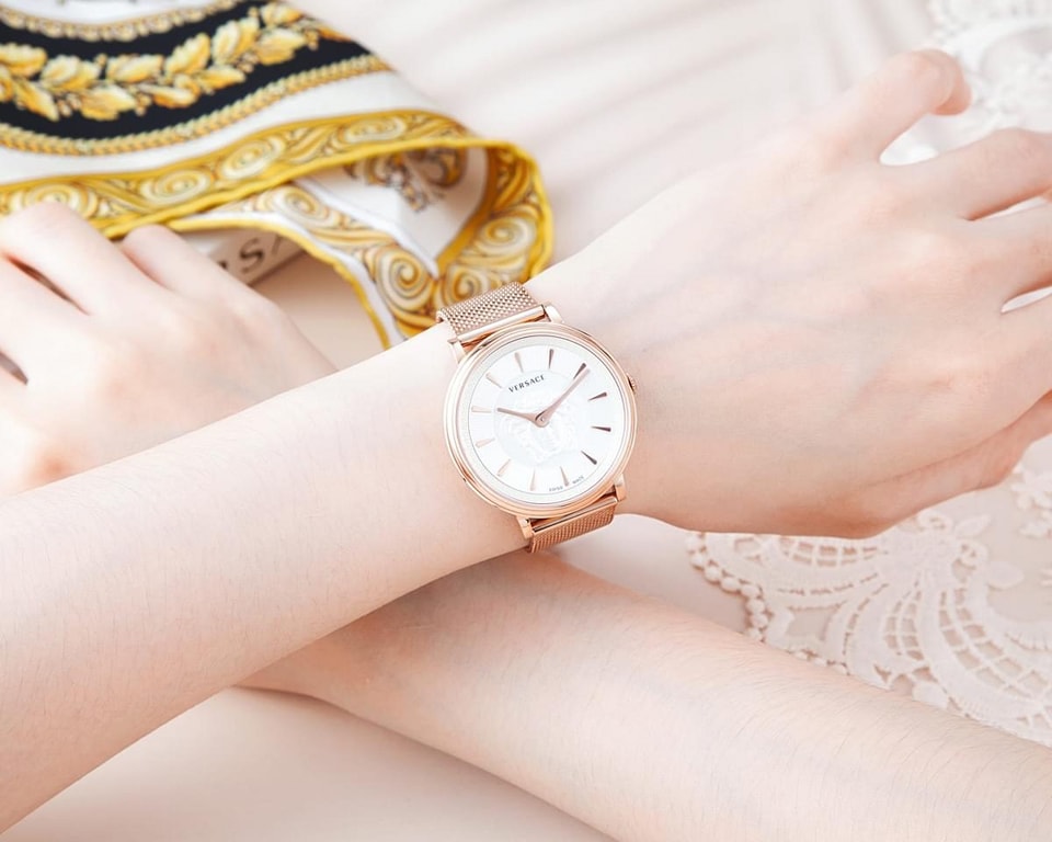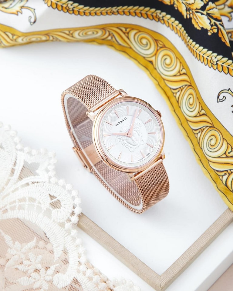 Đồng Hồ Versace Chính Hãng Nữ VE8103019 V-Circle Rose Gold Steel Medusa Ladies Watch