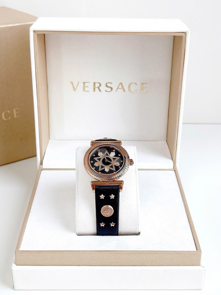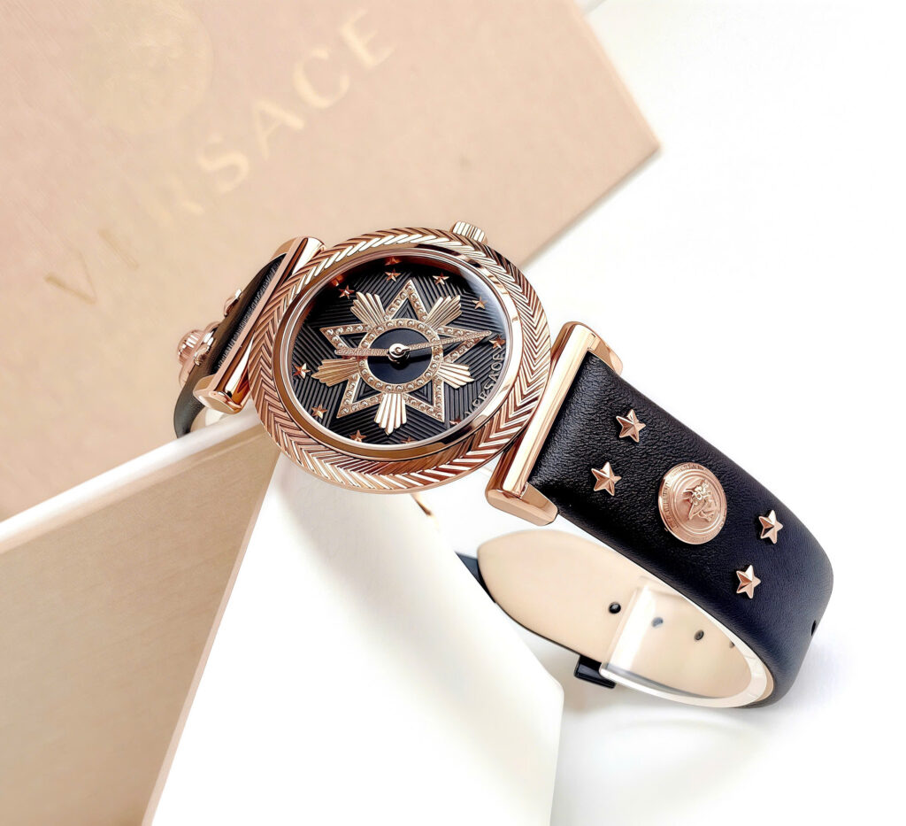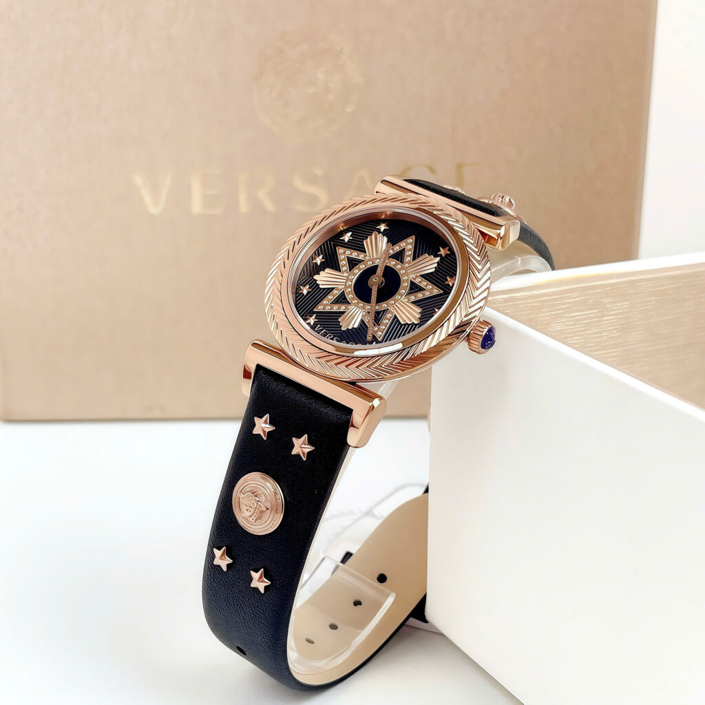 Đồng Hồ Versace Chính Hãng Nữ VERE01519 V-Motif Western Black Leather Ladies Watch