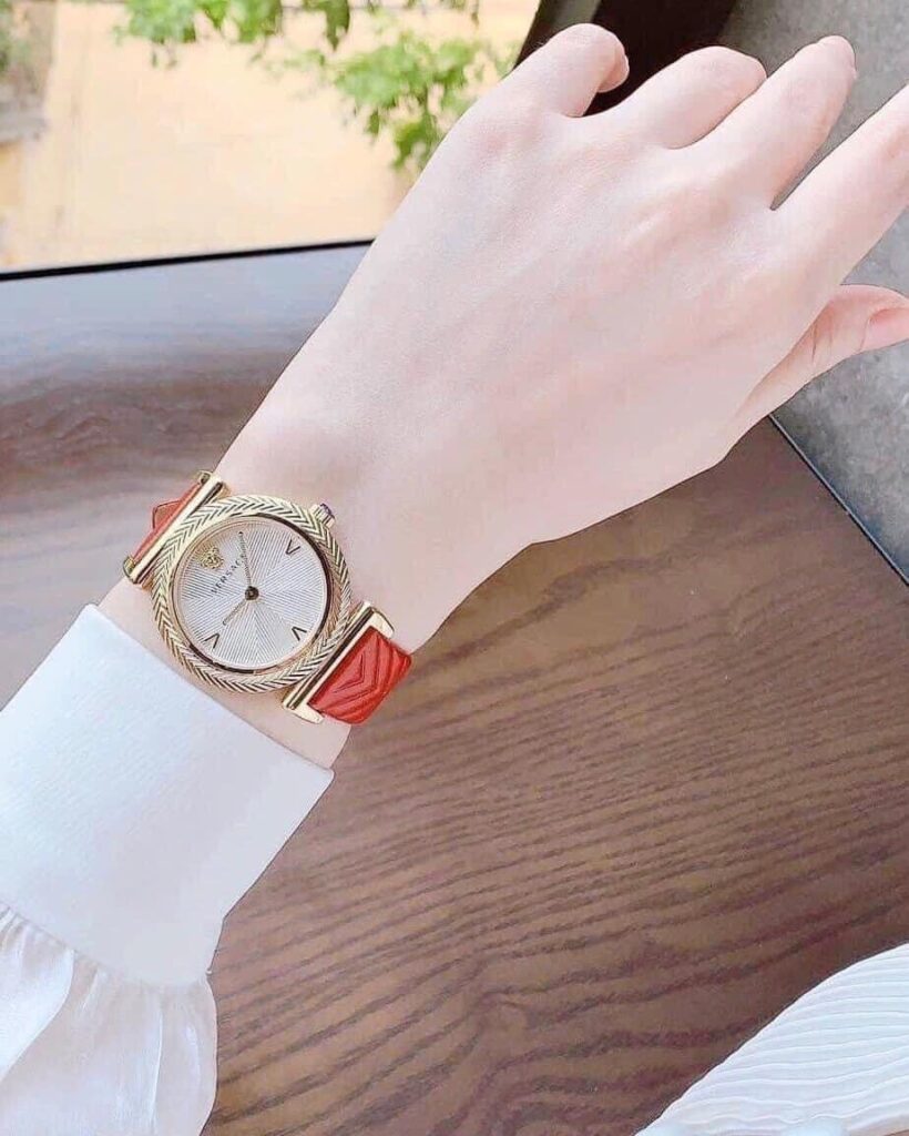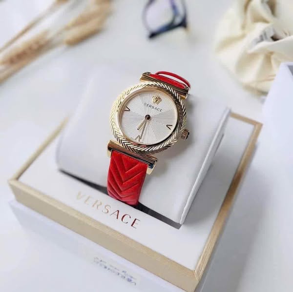 Đồng Hồ Versace Chính Hãng Nữ VERE01820 V-Motif Red Leather Ladies Watch