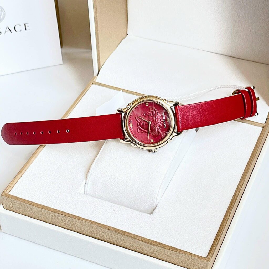 Đồng Hồ Versace Nữ Chính Hãng VEPN00220 Safety Pin Red Leather Ladies Watch