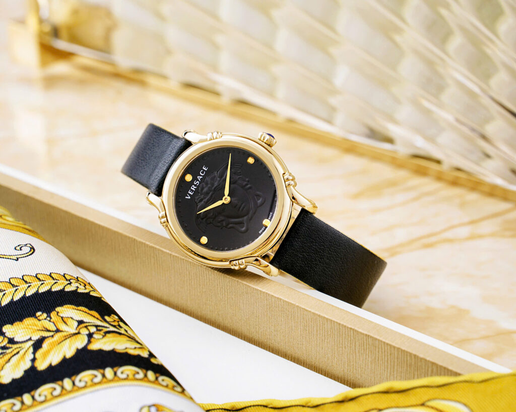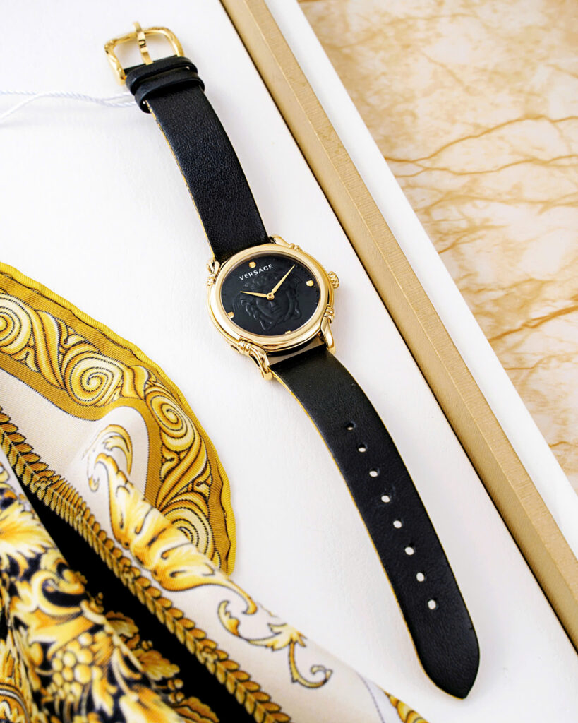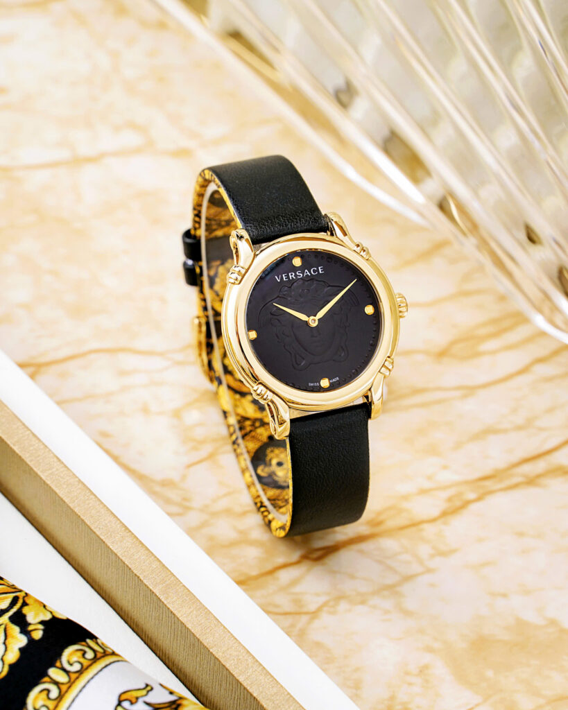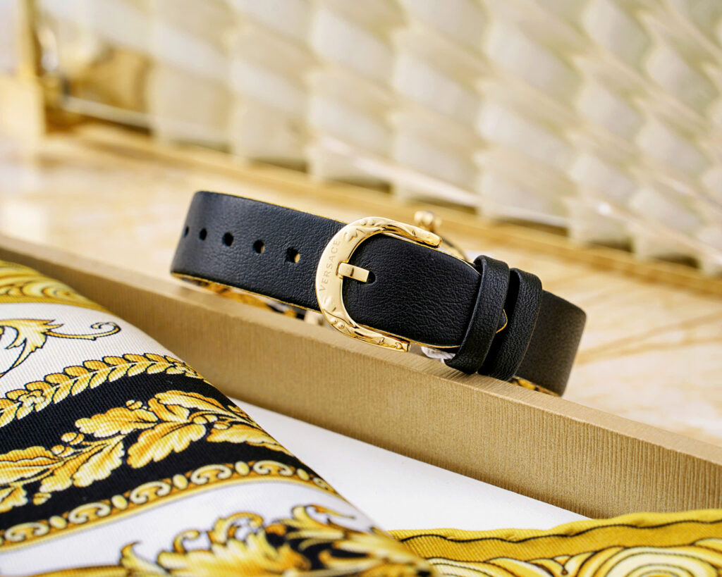 Đồng Hồ Versace Nữ Chính Hãng VEPN00320 Safety Pin Black Leather Ladies Watch